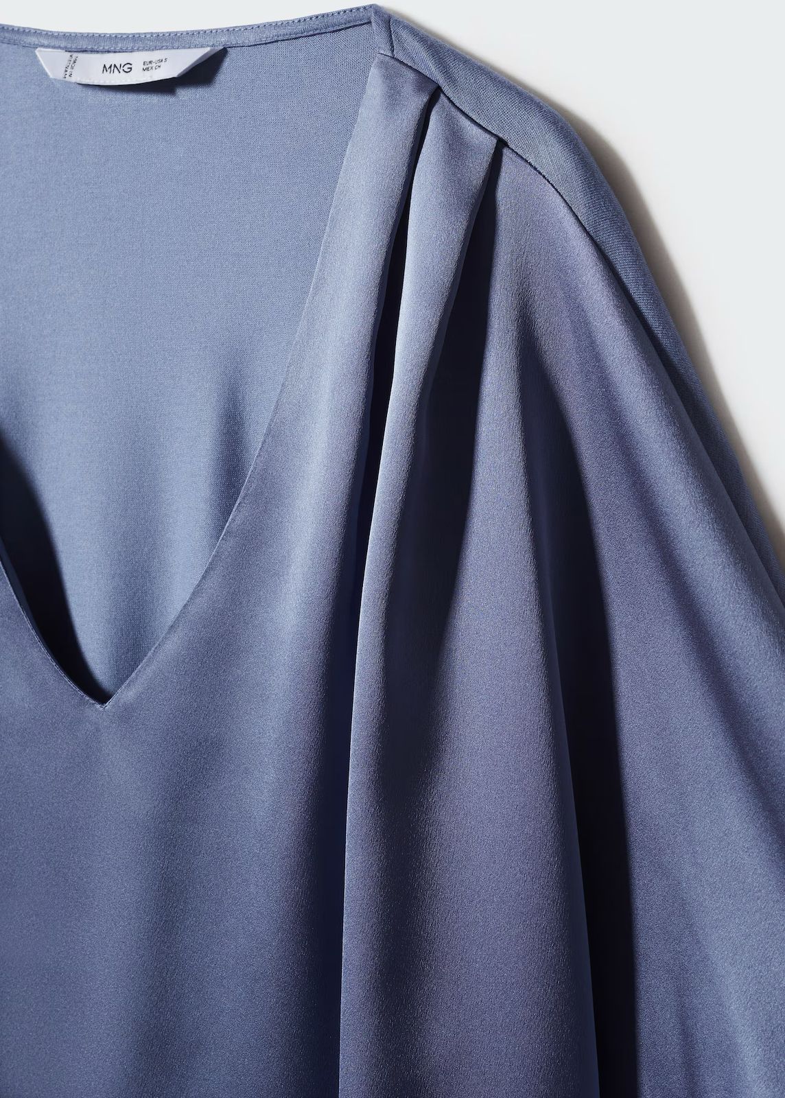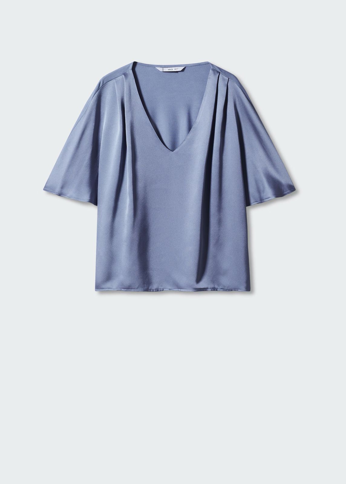 Tejido satinado, tejido fluido, diseño recto, cuello pico, manga corta, sin cierre, disponible Plus, colección fiesta y ceremonia.