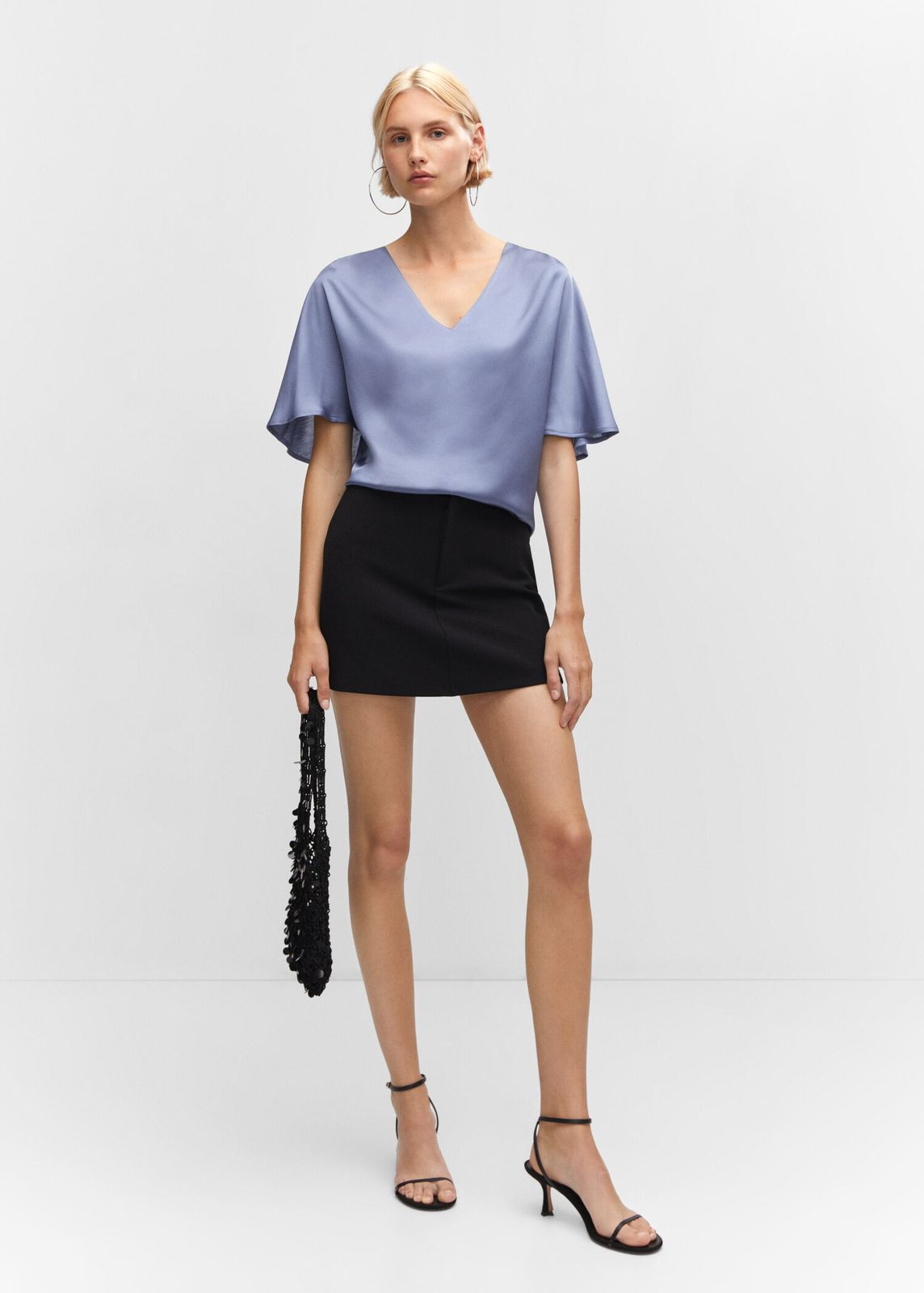 La modelo lleva la talla S y mide 179cm. Azul Celeste.