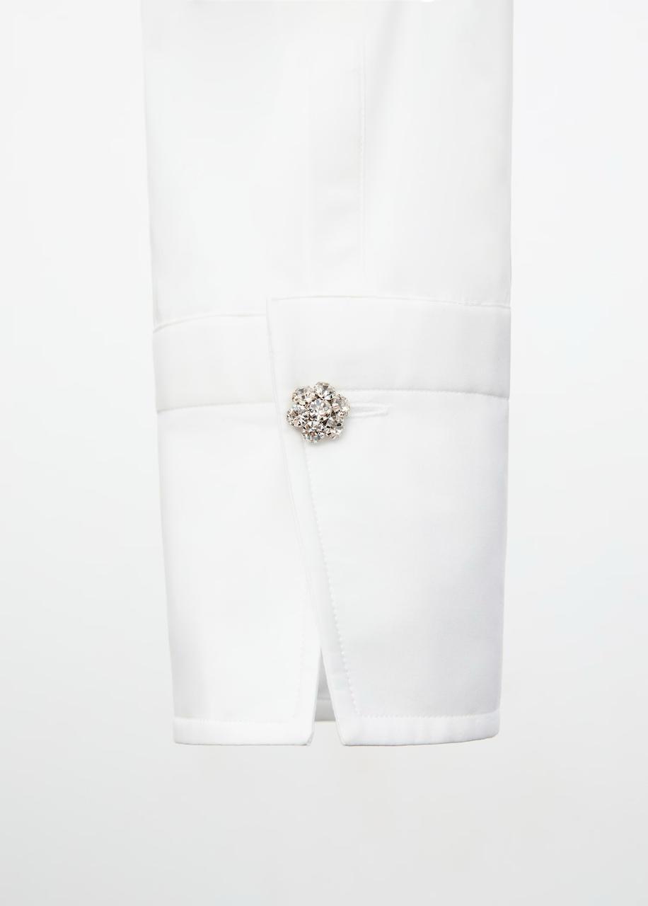 100% algodón. Diseño recto. Cuello camisero. Manga larga con puños abotonados. Cierre de botones oculto en la parte delantera. Botón efecto joya. Colección fiesta, ceremonia y comunión.