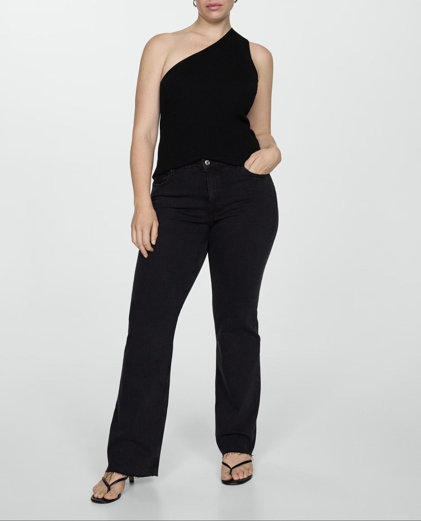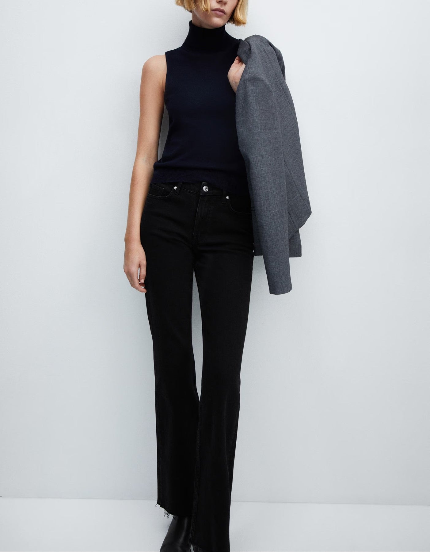 Tejido de algodón estilo tejano vaquero. Diseño campana. Estilo flare. Tiro medio. Trabillas. Cinco bolsillos. Cierre de cremallera y botón. Bajo deshilachado. Full length. Largo interior 85 cm. Festival Season. Diseño acampanado. Largo interior 84 cm.