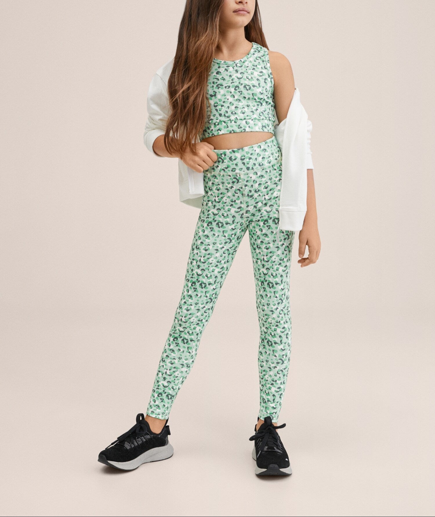 Sport. Tejido ligero. Tejido elástico. Goma elástica. Estampado animal print. Diseño leggings. Diseño largo. Tiro alto.