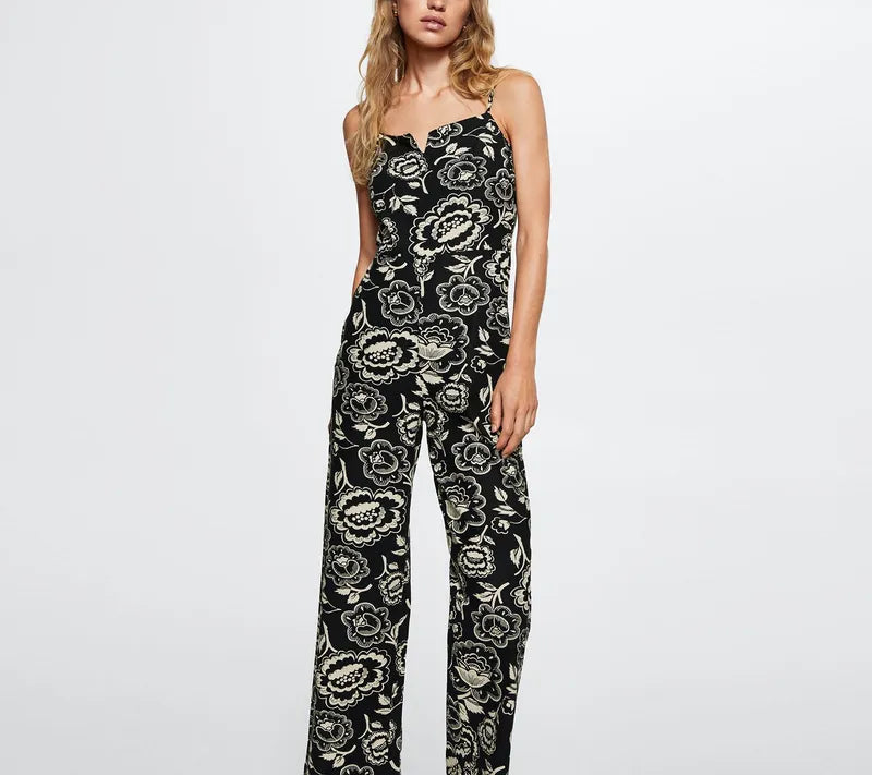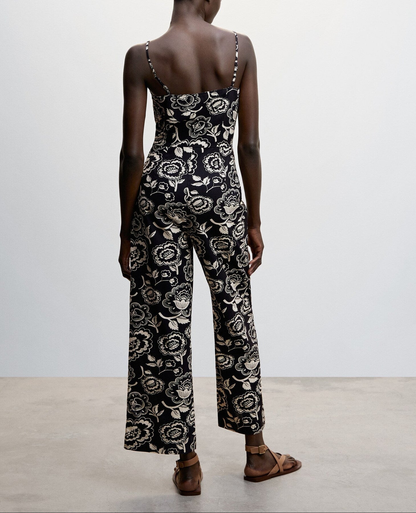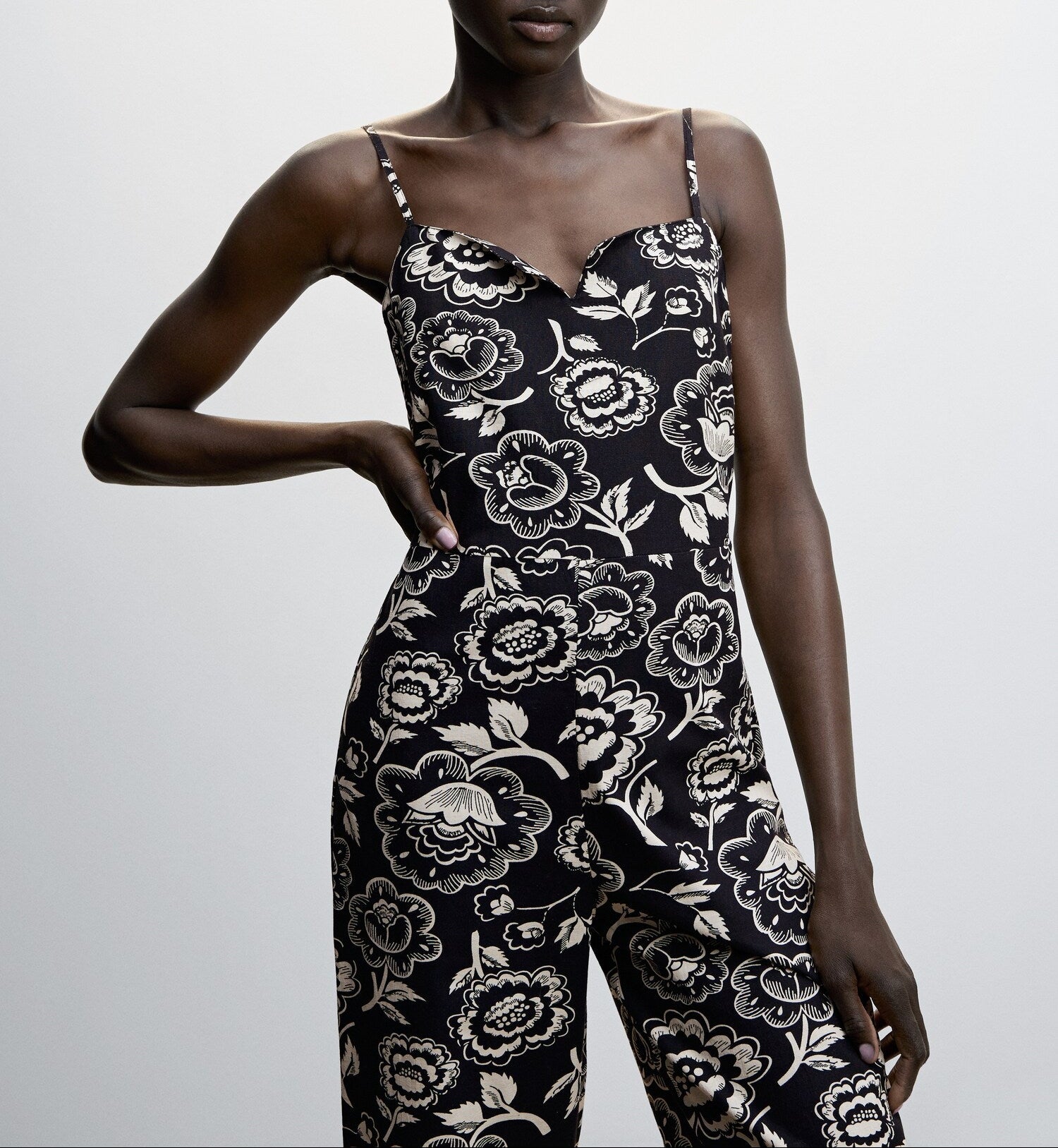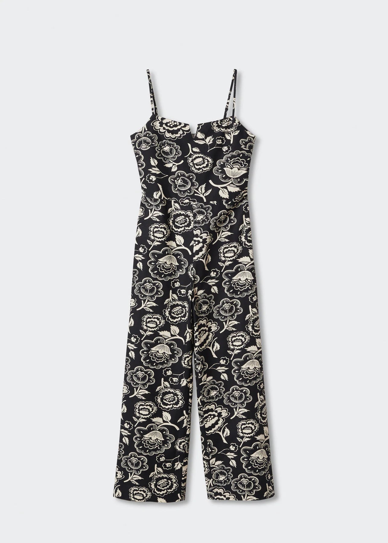 Tejido mezcla de algodón. Tejido fluido. Estampado floral. Diseño largo. Diseño recto. Cuello escotado. Tirantes finos ajustables. Cierre cremallera invisible en el lateral.