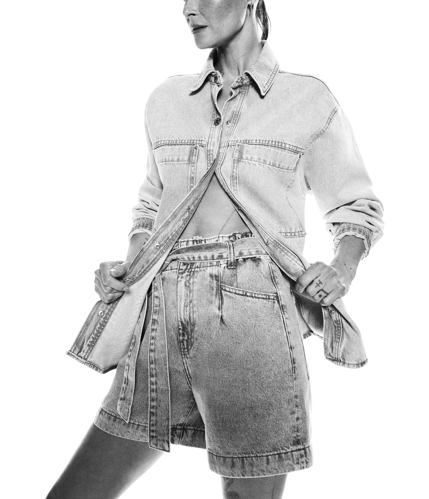 100% Algodón. Diseño vaquero. Paperbag. Diseño corto. Dos bolsillos laterales. Dos bolsillos de parche en la parte posterior. Trabillas. Cinturón desmontable. Bajo vuelto. Cierre de cremallera y botón. Tejido de algodón estilo tejano vaquero. Corte paperbag. Tiro alto. Cinco bolsillos.
