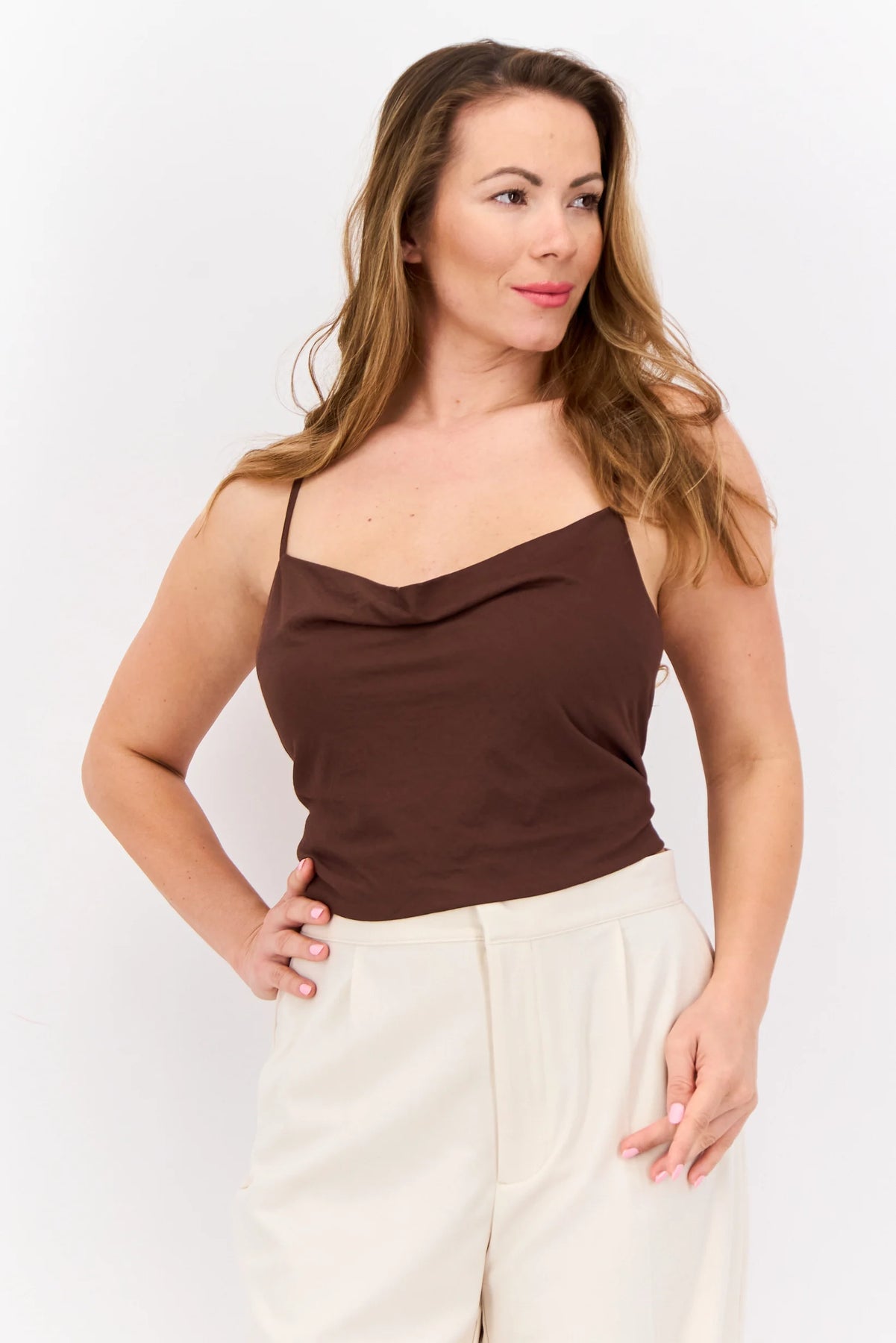 Tejido fluido. Diseño crop. Diseño entallado. Cuello escotado. Escote drapeado. Tirantes finos. Espalda abierta. Tirantes cruzados en la espalda. Tirantes ajustables. Cierre de lazo en la espalda. Total look. Colección fiesta y ceremonia.