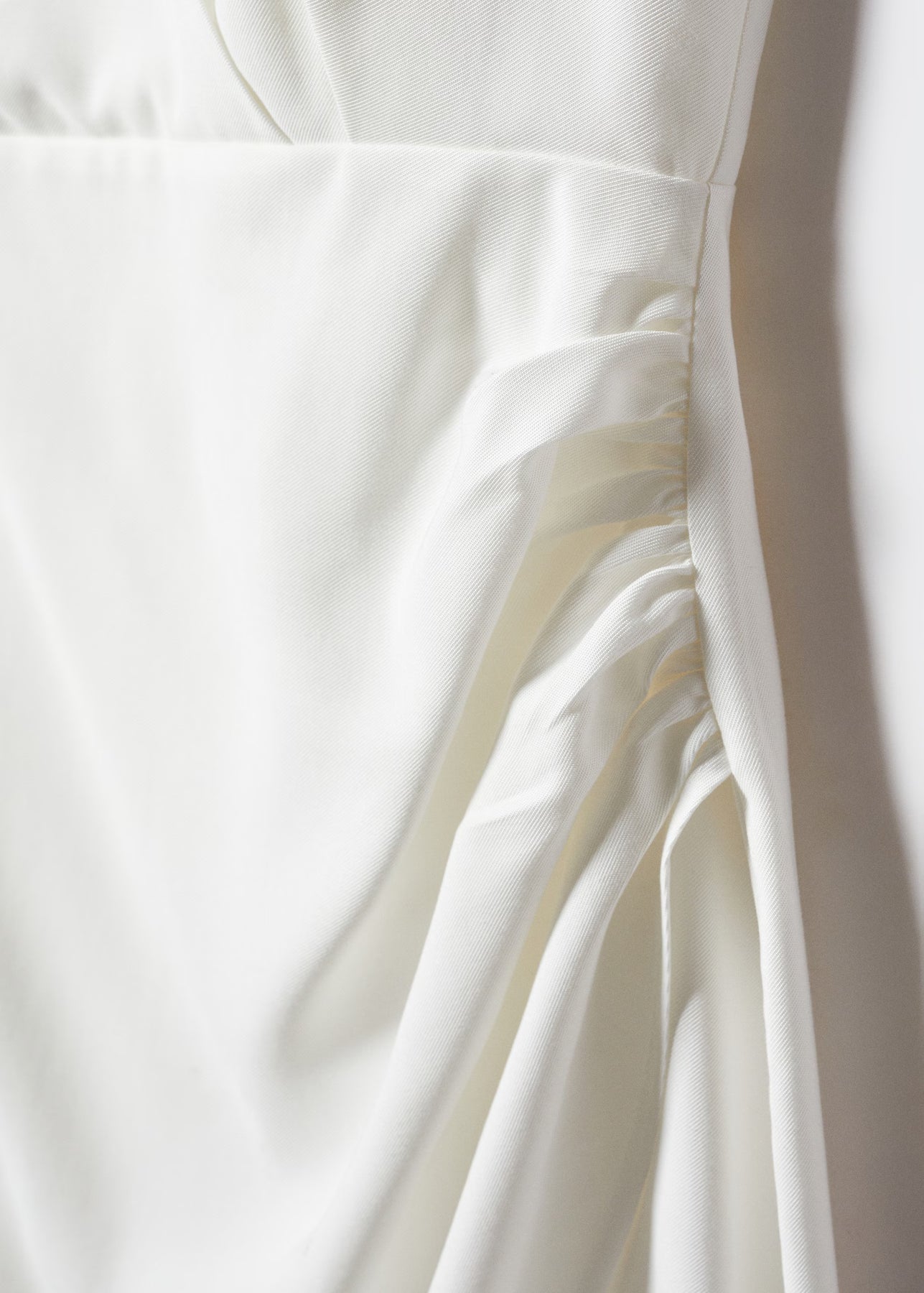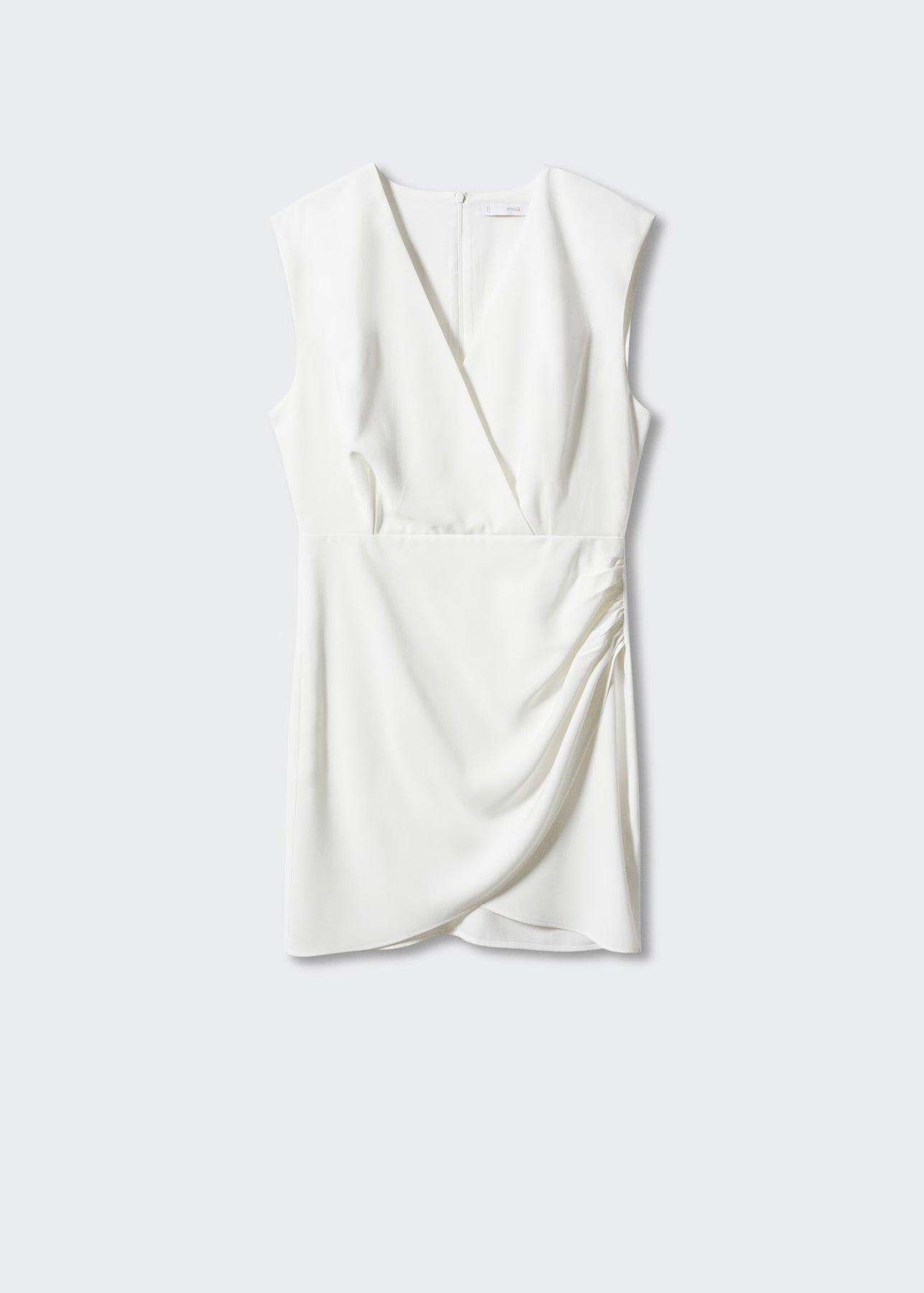 Tejido fluido. Diseño recto. Diseño corto. Diseño cruzado. Escote cruzado. Cierre lateral de cremallera. Sin mangas. Forro interior.