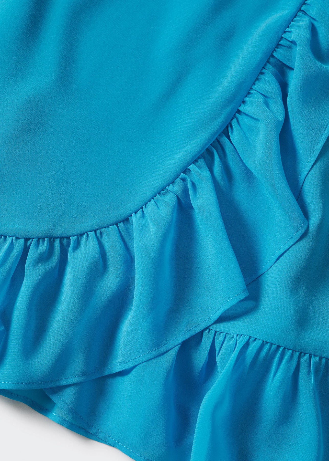 Tejido 100% algodón. Tejido fluido. Estampado de rayas. Detalle de volante. Diseño midi. Cuello escotado. Costuras decorativas. Manga corta abullonada.