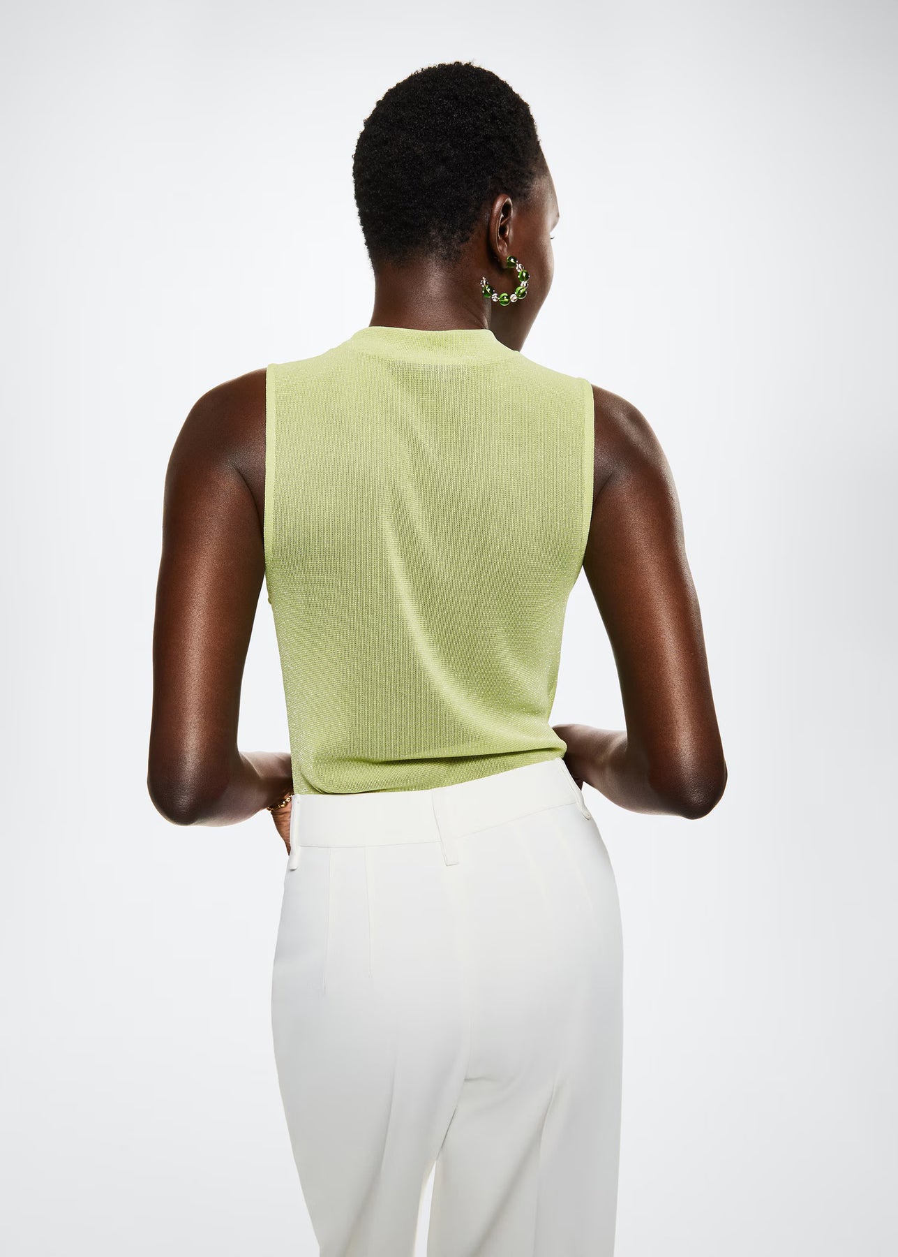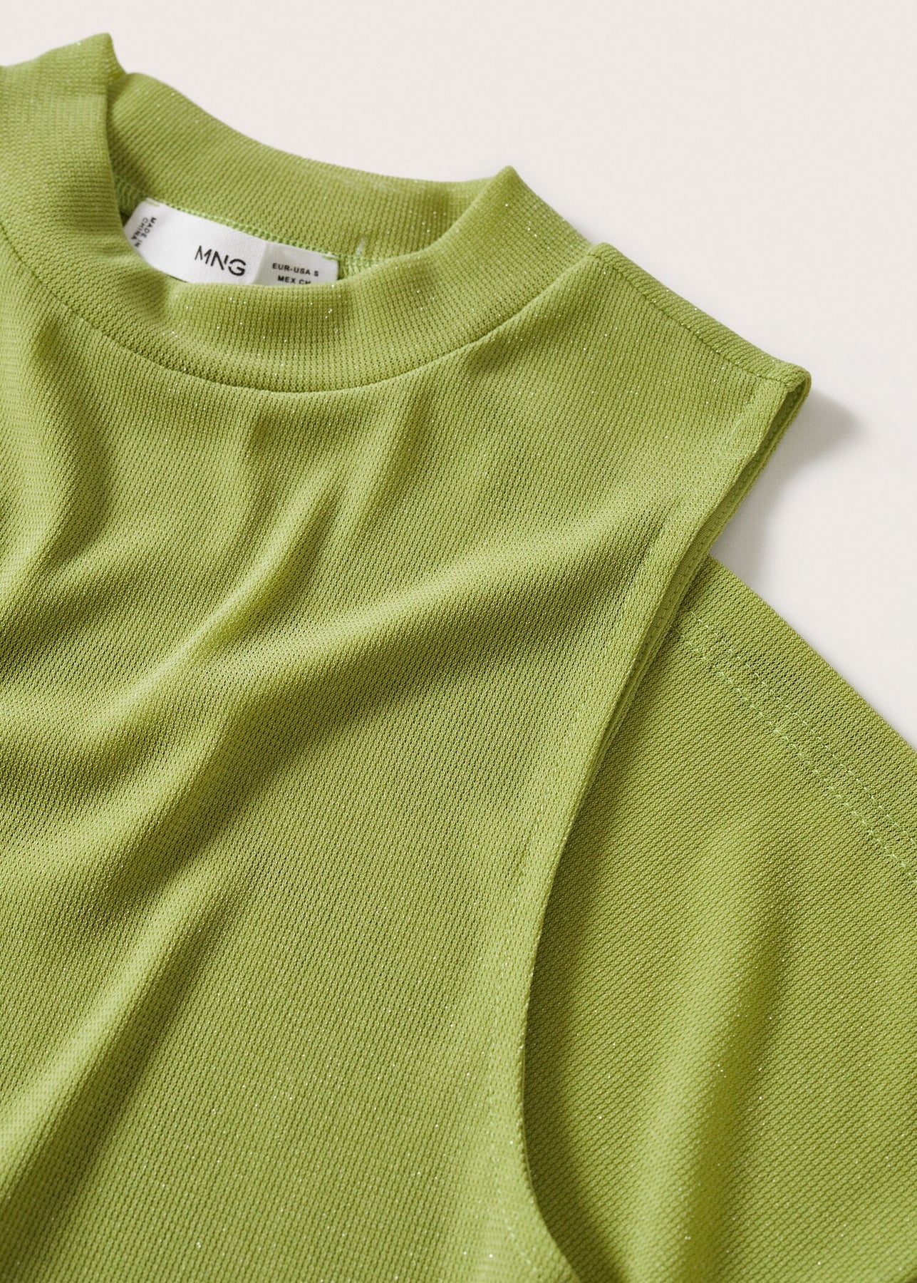 Tejido de punto. Tejido de lúrex. Tejido transparente. Diseño recto. Diseño largo. Cuello halter. Sin mangas. Colección para fiestas y eventos.