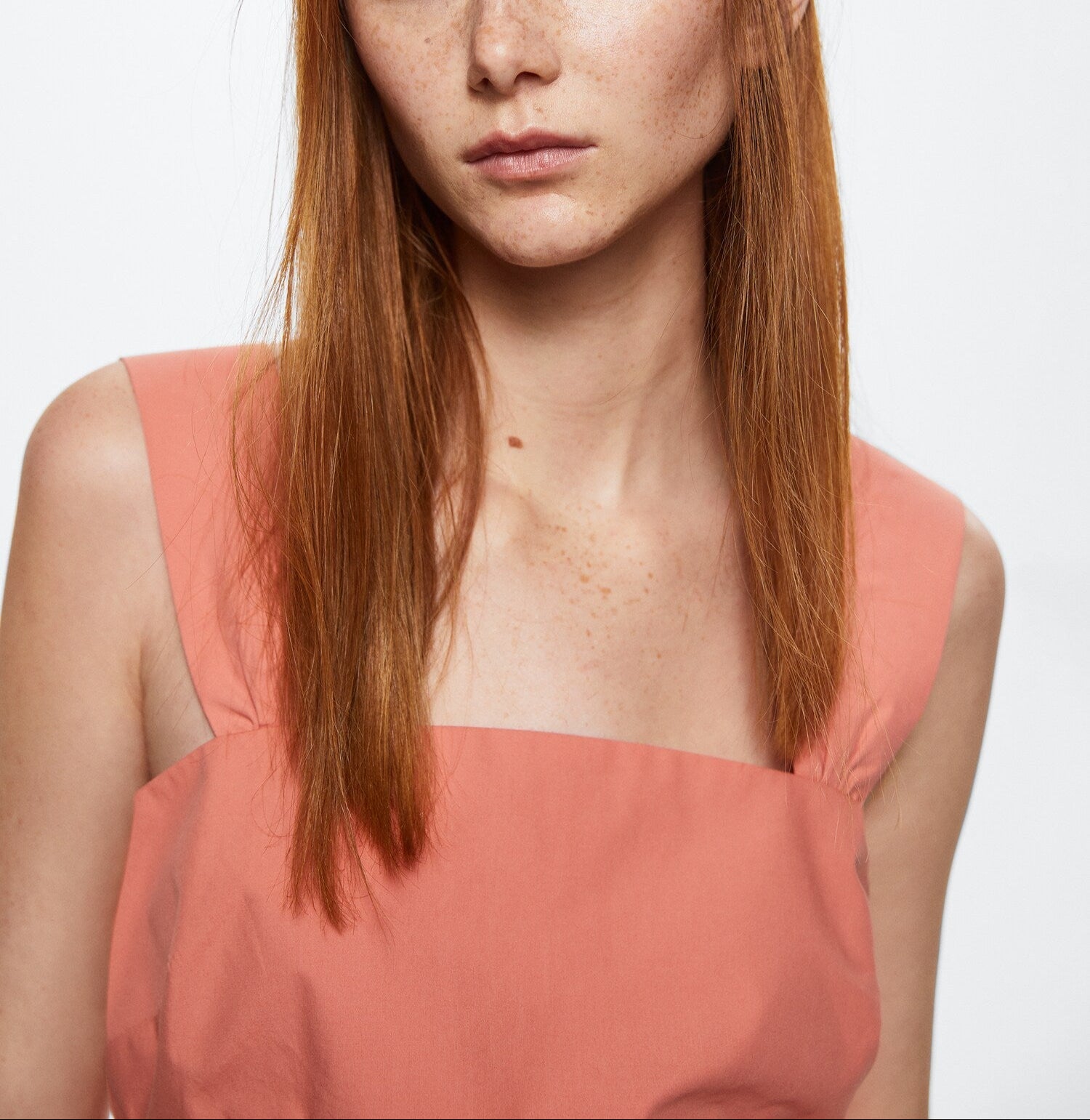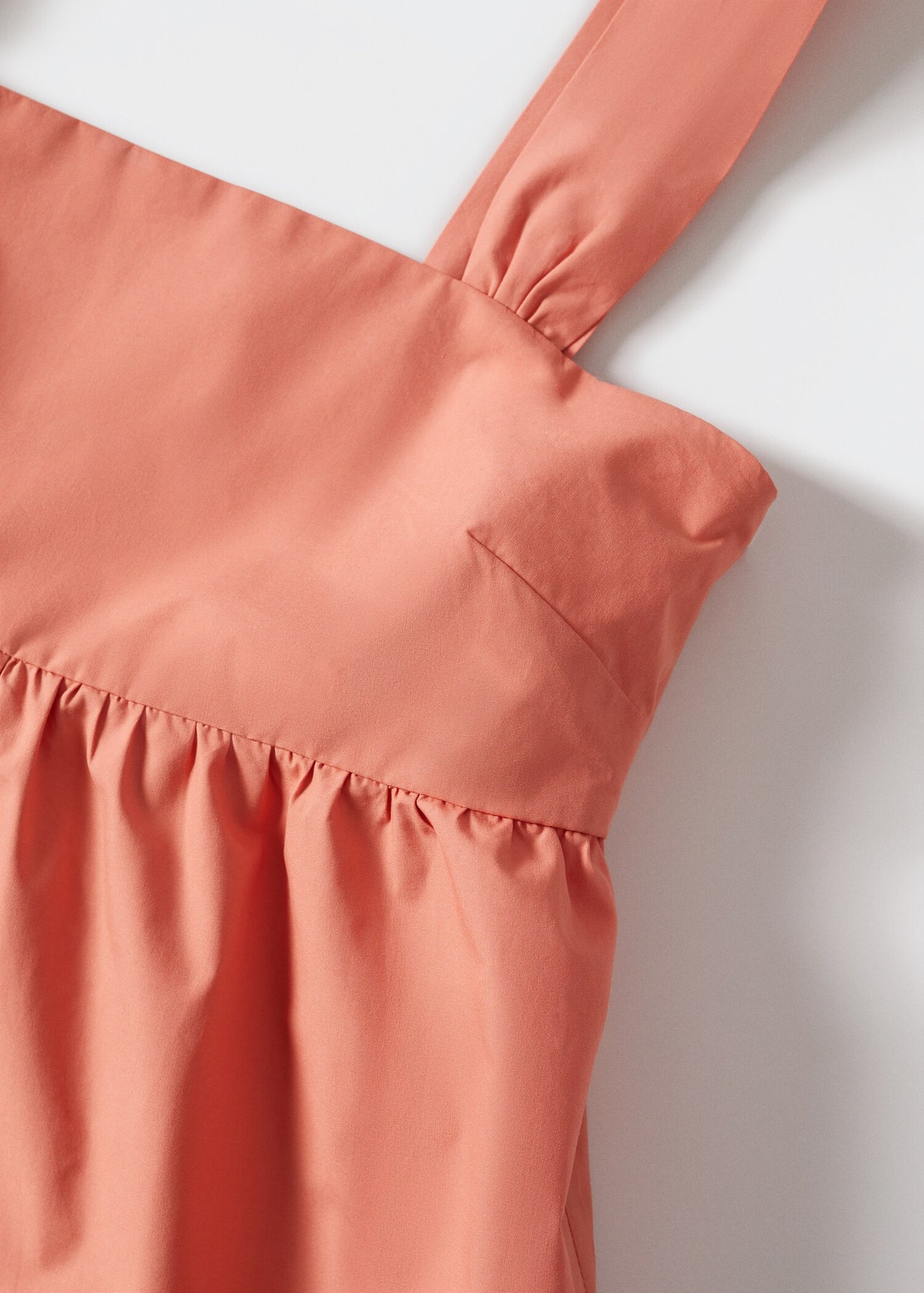 100% Algodón. Diseño largo. Diseño evasé. Cuello escotado. Tirantes anchos. Volante en el bajo. Cierre lateral de cremallera.