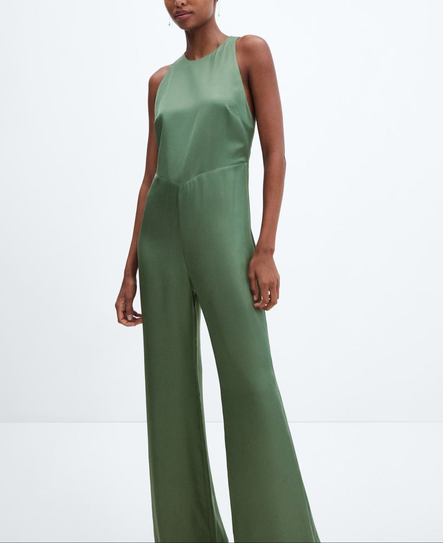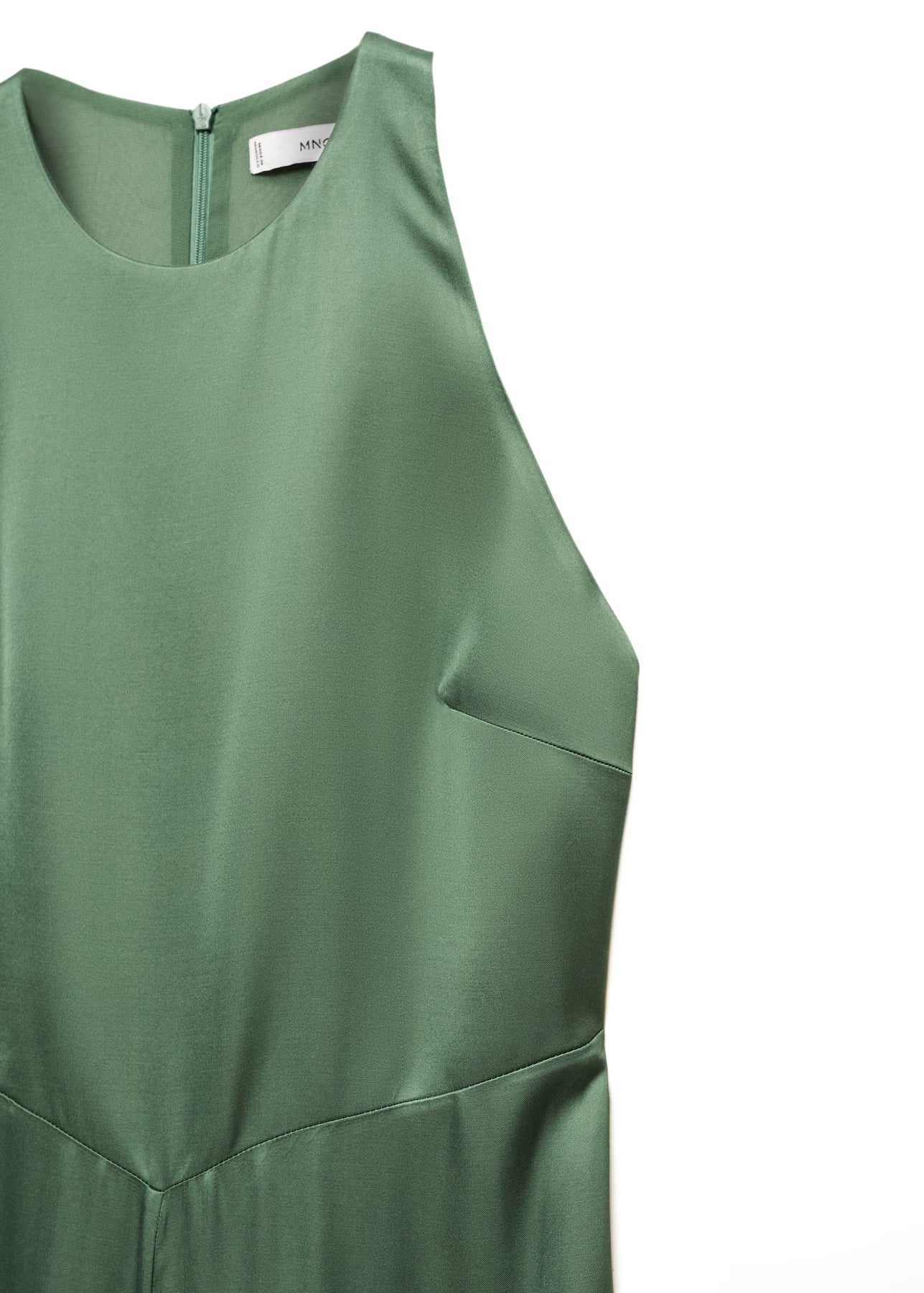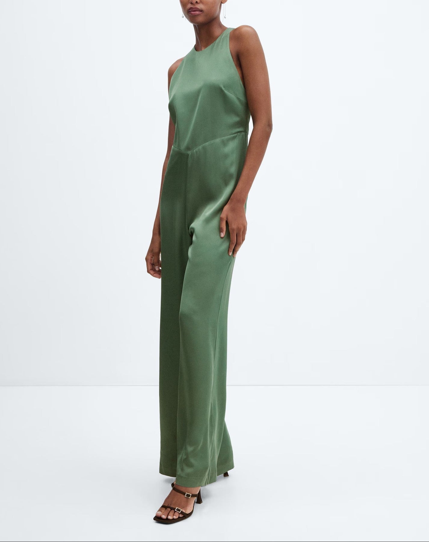 Tejido fluido. Diseño largo. Diseño wideleg. Efecto satinado. Sin mangas. Cuello halter. Cierre de cremallera en la parte posterior. Forro interior.