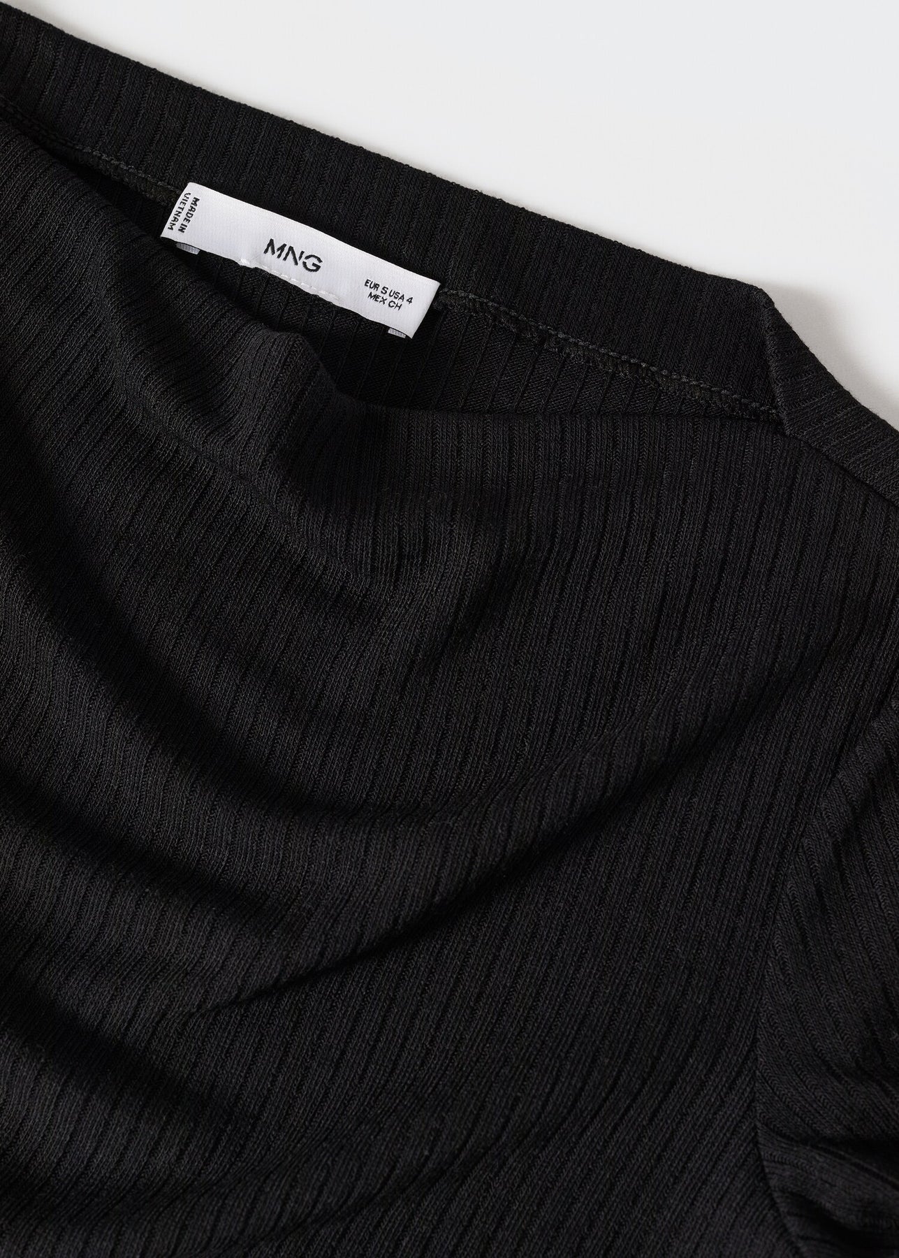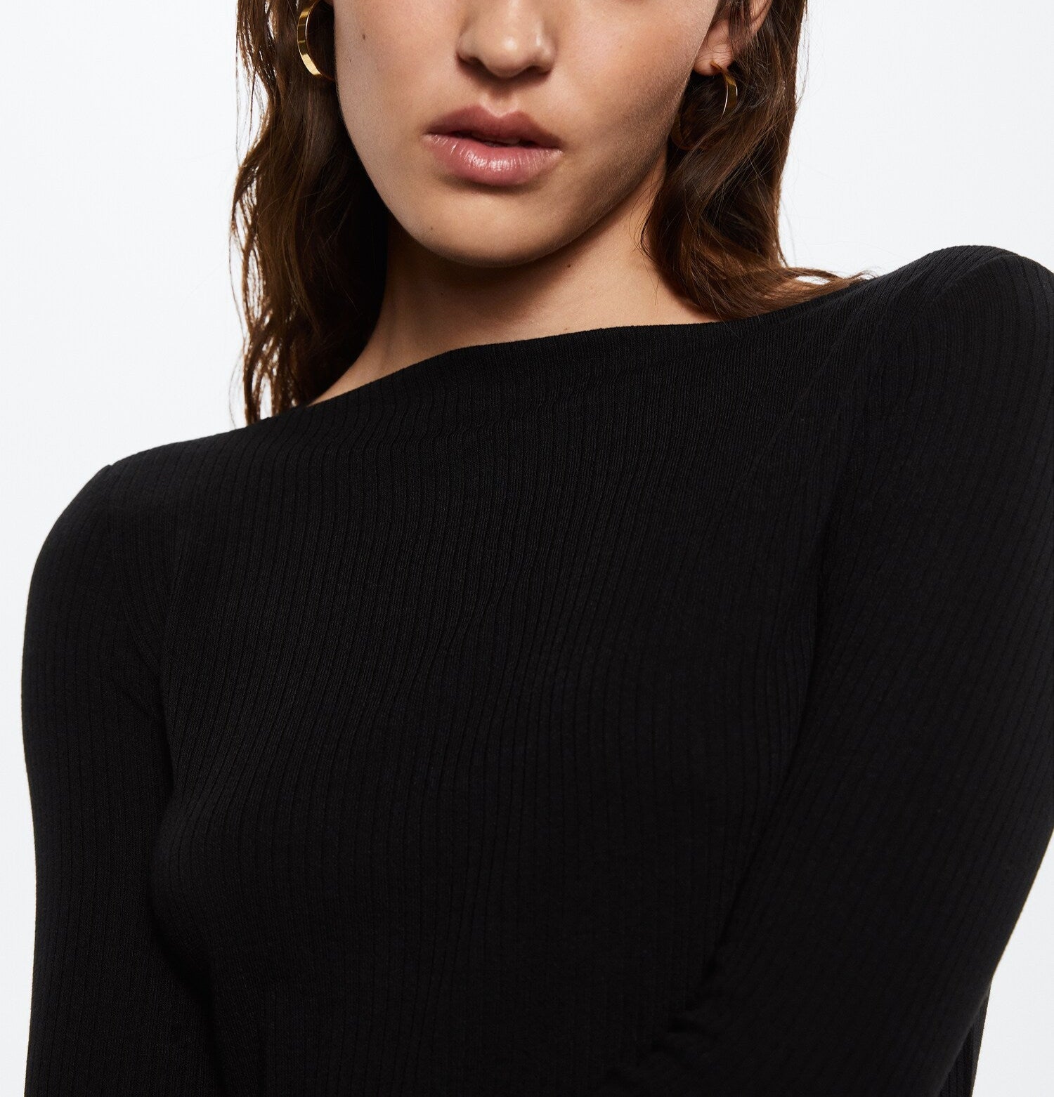 Tejido de punto de canalé. Diseño corto. Diseño entallado. Cuello cerrado. Manga larga. Sin cierre.
