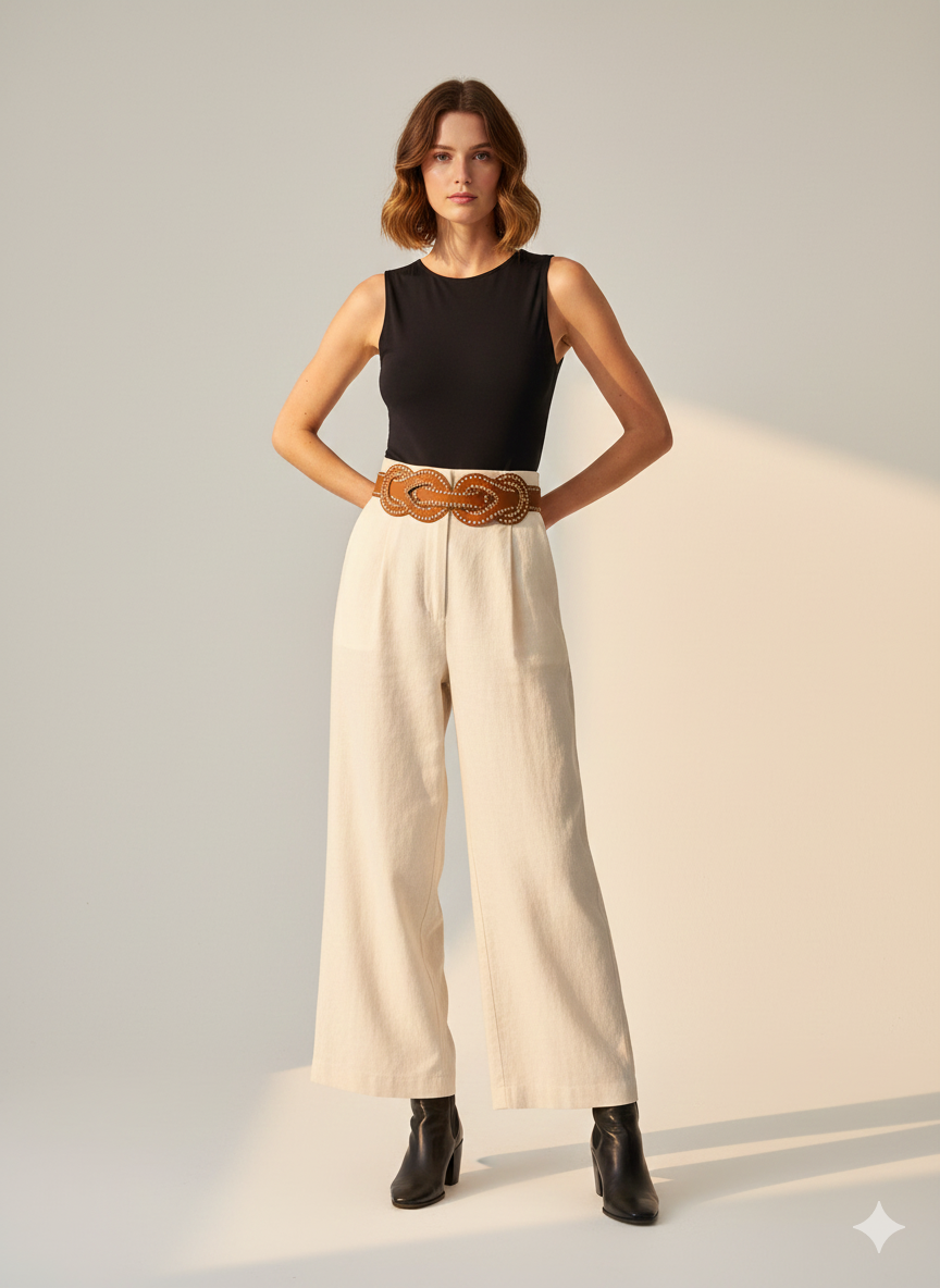 Este cinturón de cuero ecológico con tachas doradas combina estilo y sofisticación con practicidad. Su parte ancha de 9 cm aporta presencia, mientras que la goma flexible de 4 cm garantiza comodidad y ajuste perfecto. Con un largo que va de 80 cm sin estirar hasta 108 cm, se adapta fácilmente a diferentes medidas, ideal para complementar looks elegantes y modernos.