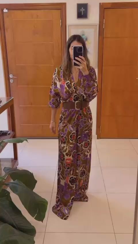 Tejido fluido. Tejido satinado. Estampado floral. Diseño largo. Diseño recto. Escote de pico. Manga larga con puños abotonados. Botones forrados. Detalle fruncido en los hombros. Escote de pico en la parte posterior. Cierre de lazo en la espalda. Colección fiesta y ceremonia.